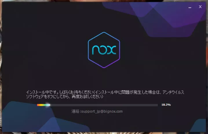 Nox Playerのダウンロードが終わったら、(念のため)管理者として実行してインストールを行います。