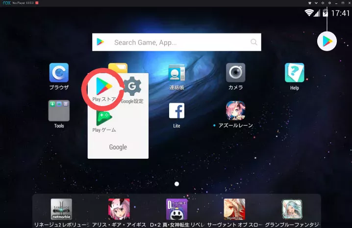 この2つを終えれば、Nox Playerに自由にゲームをインストールしてパソコンからスマホゲームを遊べるようになる。