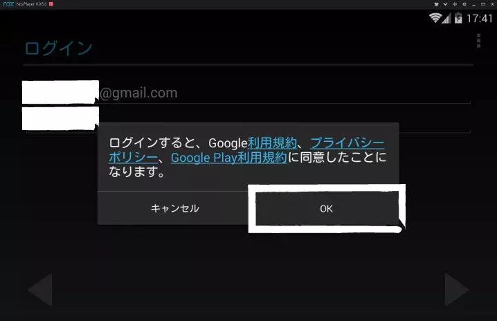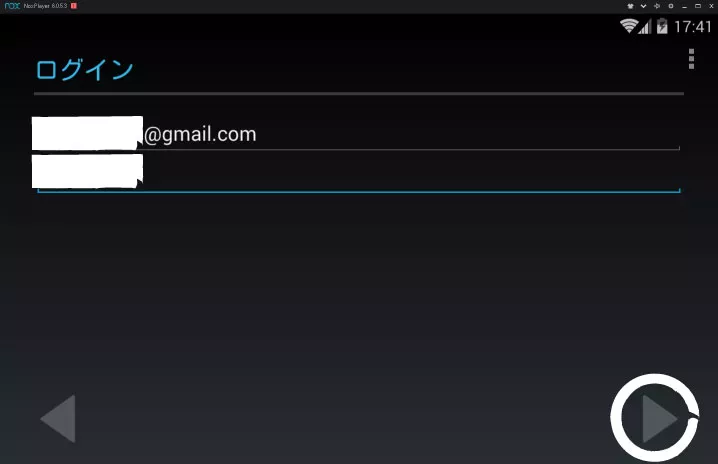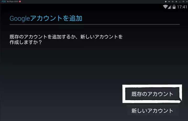 するとGoogle Playにログインするために「Googleアカウント」が求められる。Nox Player用に新しいアカウントを作るのも良いが、最近のGoogleは新しいアカウントを作るのが面倒。