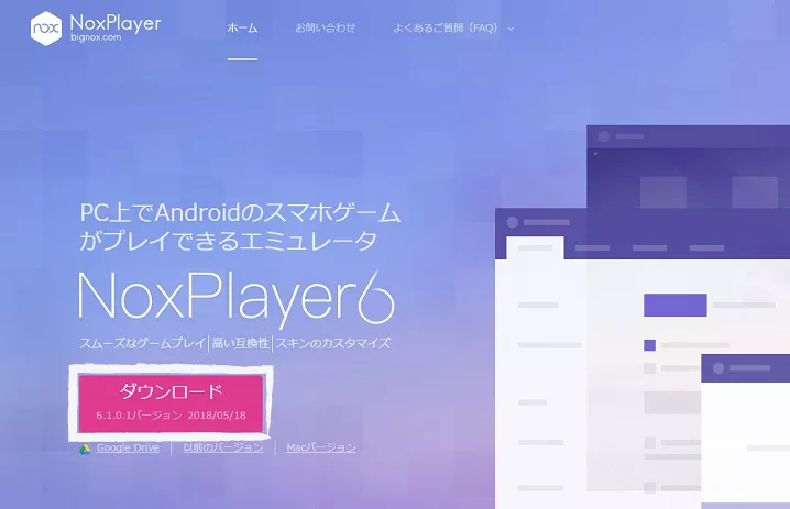 最新版をインストールする。Nox公式サイトで無料でダウンロードできるので、ダウンロードボタンを押して入手してください。