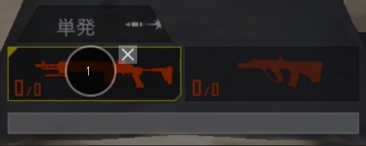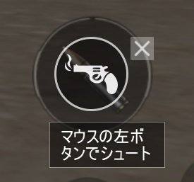 「シュートゲーム専用:ボタンをファイアにドラッグ」は、左クリックボタンです。FPS / TPSゲームで、射撃に位置する場所に設置すると左クリックで撃てるようになります。