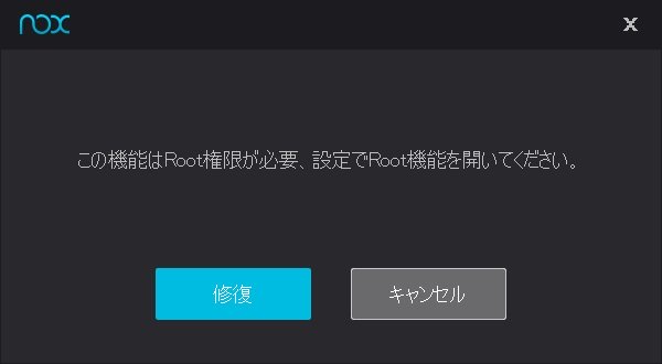 初めて使おうとすると「Root権限が必要」と言われるので、「修復」をクリックします。