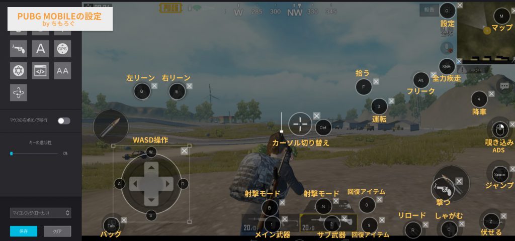 「仮想キー」の解説は以上です。最終的にPUBG MOBILEの設定はこんな感じになりました。参考にしたい方は画像をクリックして、拡大画像を確認してください。