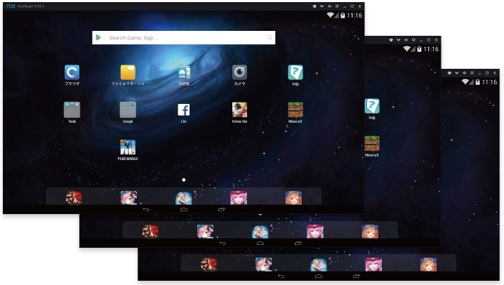 Nox Playerは簡単にスマホゲームやアプリが動くだけでなく、位置情報のすり替えや複数のNox Playerを同時に動かすことが出来るなど。「高機能」なAndroidエミュレータでもある。