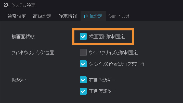 | ウィンドウサイズ強制固定 | Nox Playerのウィンドウサイズを固定する。 |
