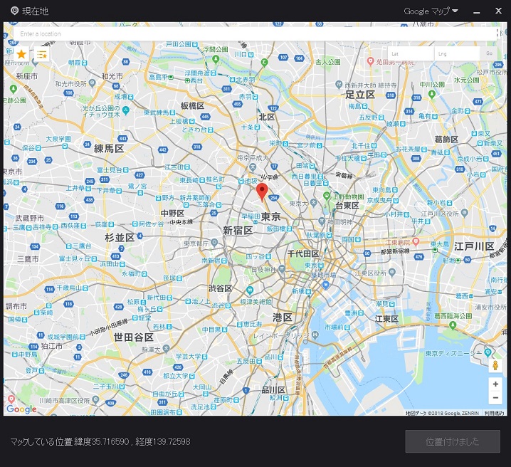 「仮想位置付け移動」は名前の通り、ニセの地理情報を送信することが出来る機能です。具体的な使い道は解説しませんが、役に立つ人にとってはおそらく有用な機能です。