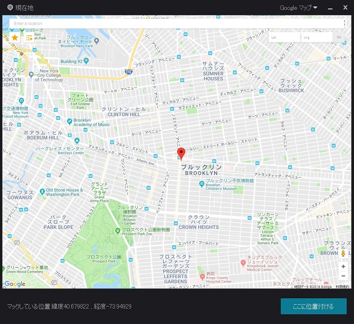 カーソルを動かして、たとえば「ニューヨーク – ブルックリン」に変更してみる。決めたら右下の「ここに位置付ける」をクリックして完了すること。
