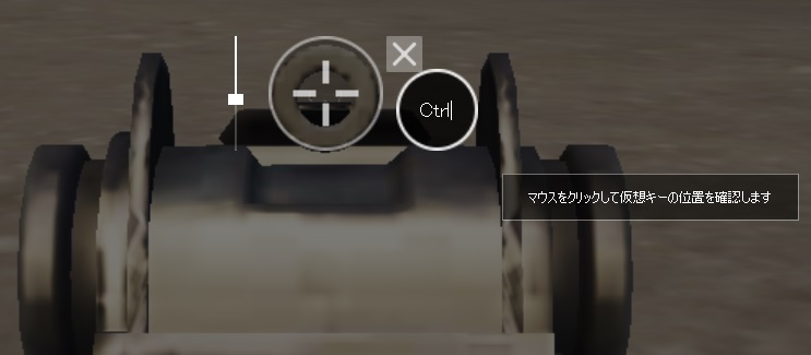 仮想キーを開くと、ツールを設定する画面が出てくる。ツールを画面上に設置することで、「この位置はスペースキーでタップする。」という具合に色々と設定ができます。
