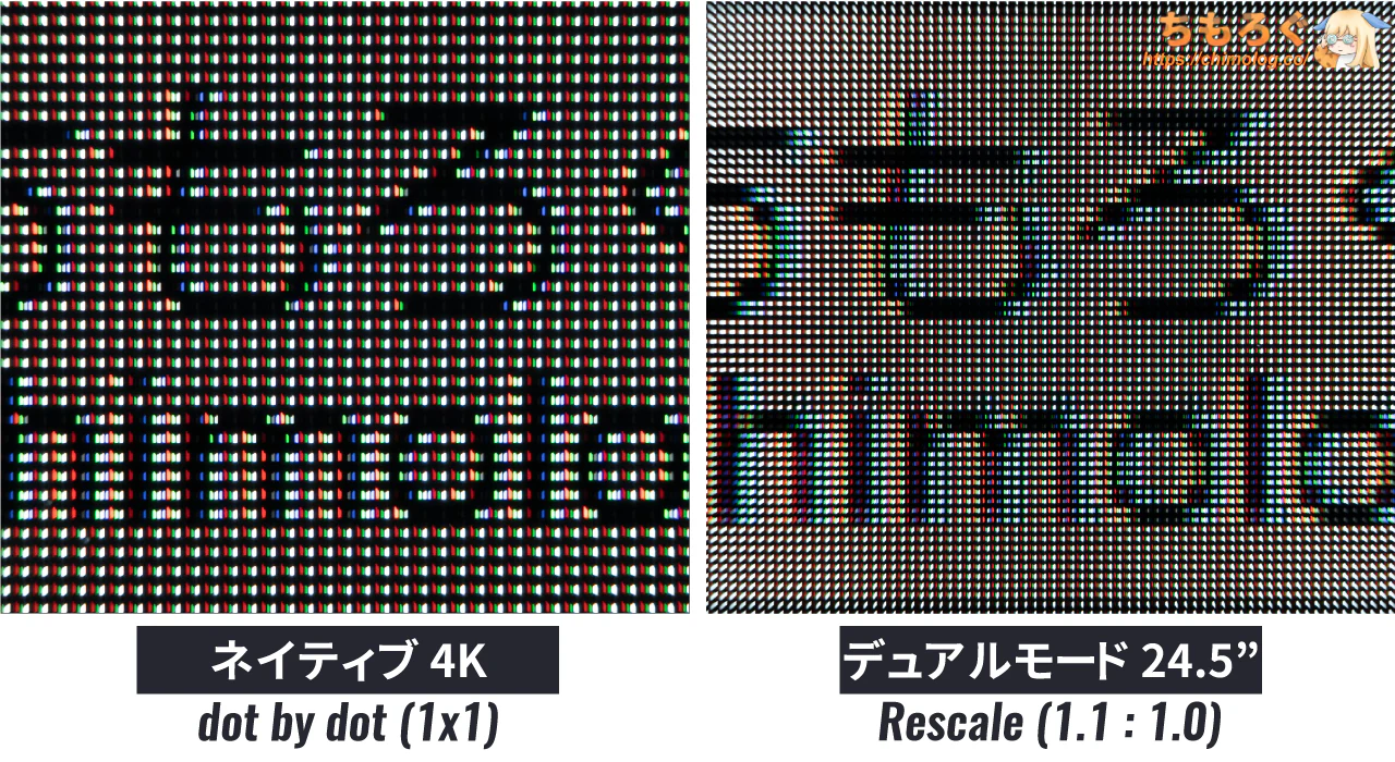 最大リフレッシュレートが240 Hz(480 Hz) ➡ 165 Hz(330 Hz)に激減するのが大きなデメリットですが、PCスペック次第では、むしろ都合のいいPCゲーマーも少ないかも?