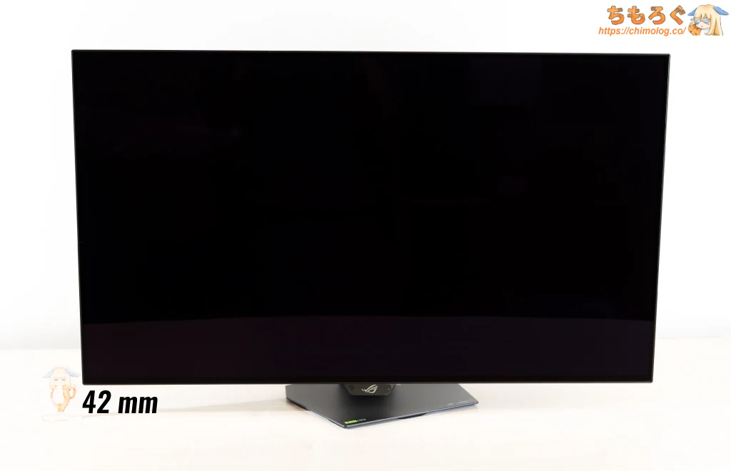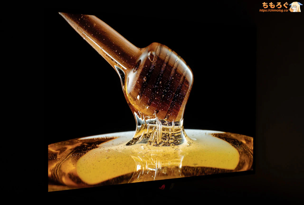 LG Displayが製造する第3世代MLA W-OLEDパネルは基本的にマットコーティング(粒度感のあるノングレア)仕様ですが、ASUSは独自のグレア版パネルをLGに用意させました。