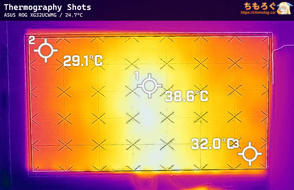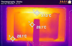 表面温度(サーモグラフィー)は、FF16(HDRモード)を約1時間ほど掛け続けてから撮影しました。