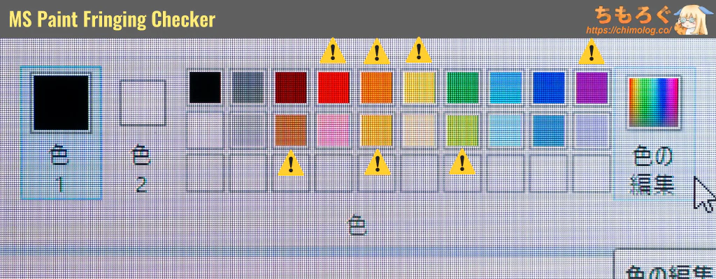 色が均一の静止画コンテンツを見ている時間が長いオフィスワークで、気にする人が多い「色ムラ」をチェック。