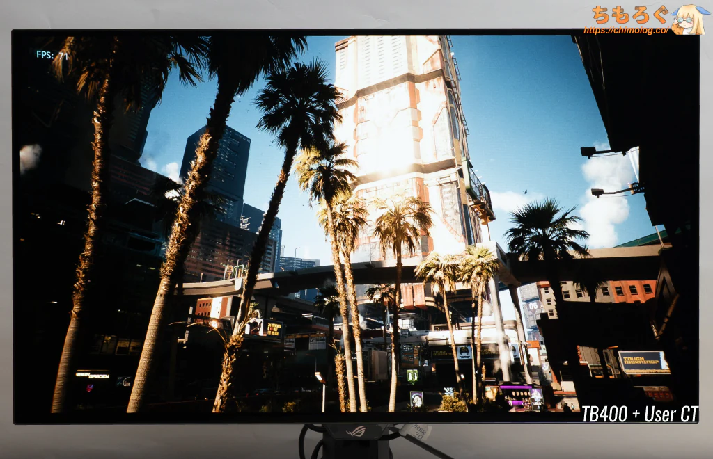 しかもパネルの表面加工は明確に上位互換です。マットコーティング並に映り込みを防ぎつつ、驚異的に透き通った透過性(グレア)を両立する「ASUS TrueBlack Glossy」技術にびっくりです。