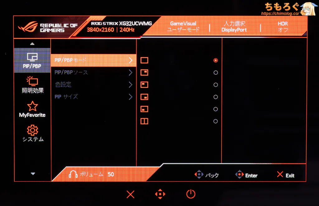 一部表示されない項目(色域モードなど)がそこそこあって、全体の8割にしかアクセスできない詰めの甘さは気になりますが、無いよりあった方がやっぱり便利です。