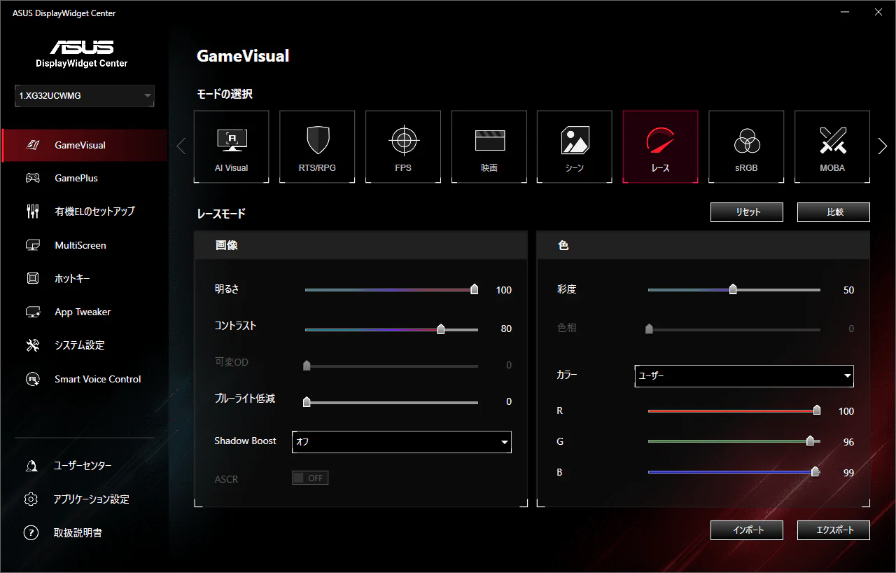 一方で「アスペクトコントロール」や「ELMB」など、一部のゲーミング機能をなぜか登録できず、ややチグハグな仕様が存在します。