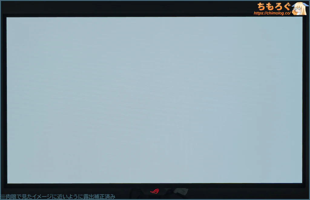 ASUSいわく、一般的なグレースケール(6504K)に調整済みらしいですが、実際はやや緑がかって見えます。