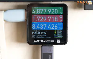 本体裏面にあるUSB Type-Cポートは、USB PD(USB Power Delivery)対応です。15 W(5.0 V x 3.0 A)まで対応。