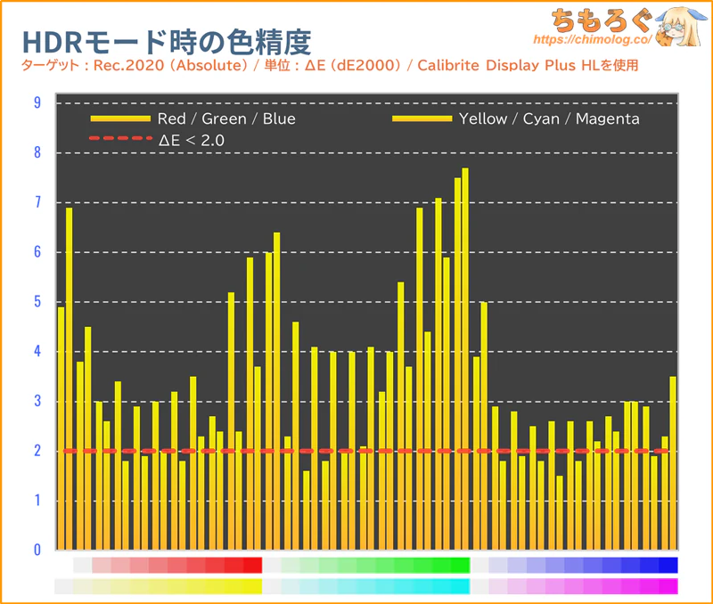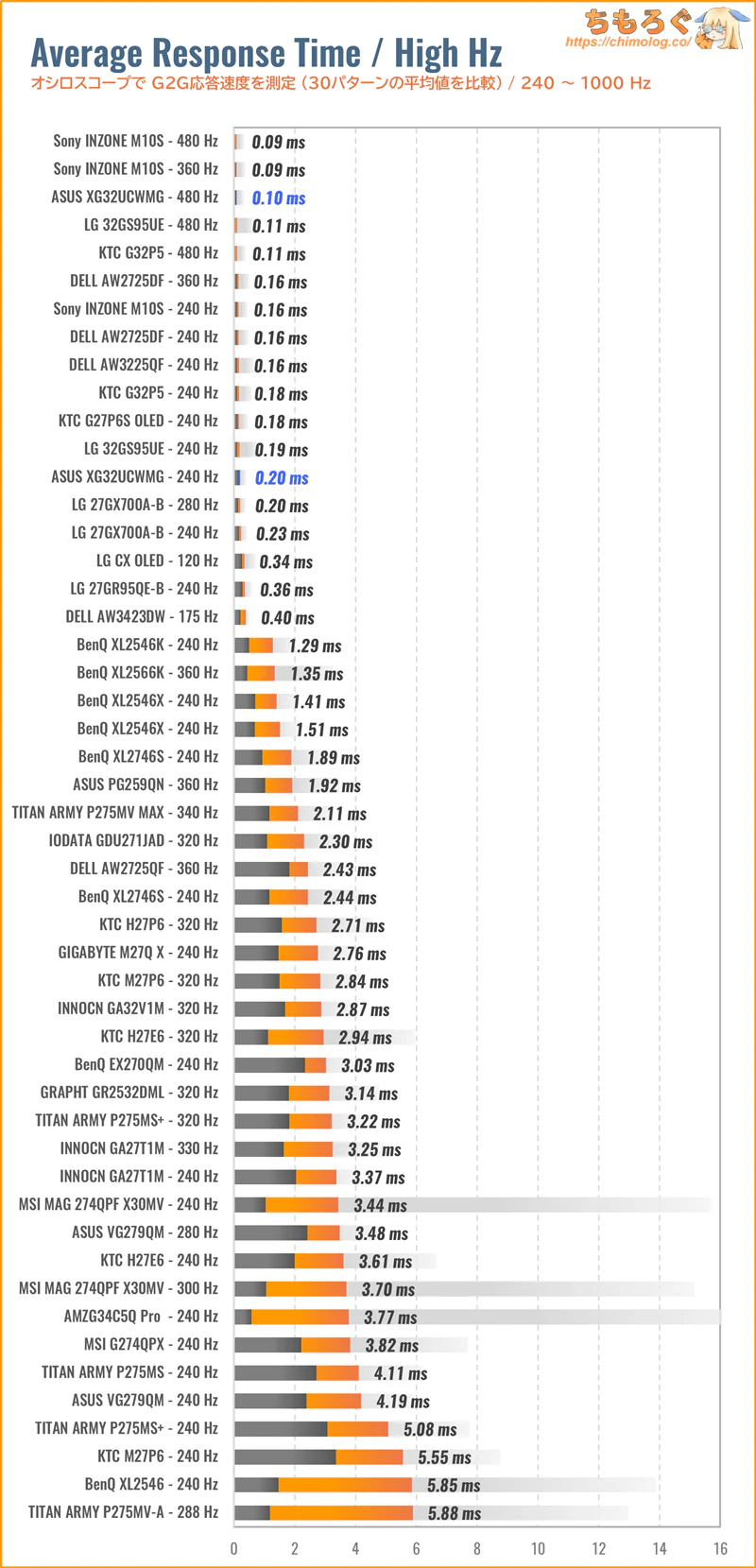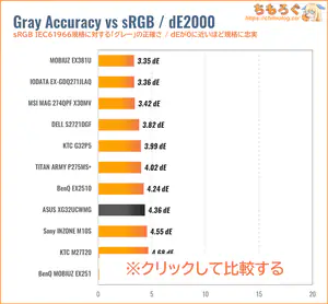 もっと詳しく測定データや比較データを見れば、他の代替案にするか、このままASUS XG32UCWMGで即決する かヒントになるかもしれません。