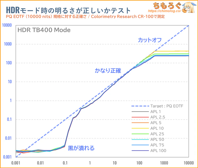 副作用としてコントラスト比が大きく向上するものの、正確な映像表現は不可能な状態に。ただ、OLEDパネルと黒つぶれカーブは相性がよく、一般ウケが良いのも理解できます。
