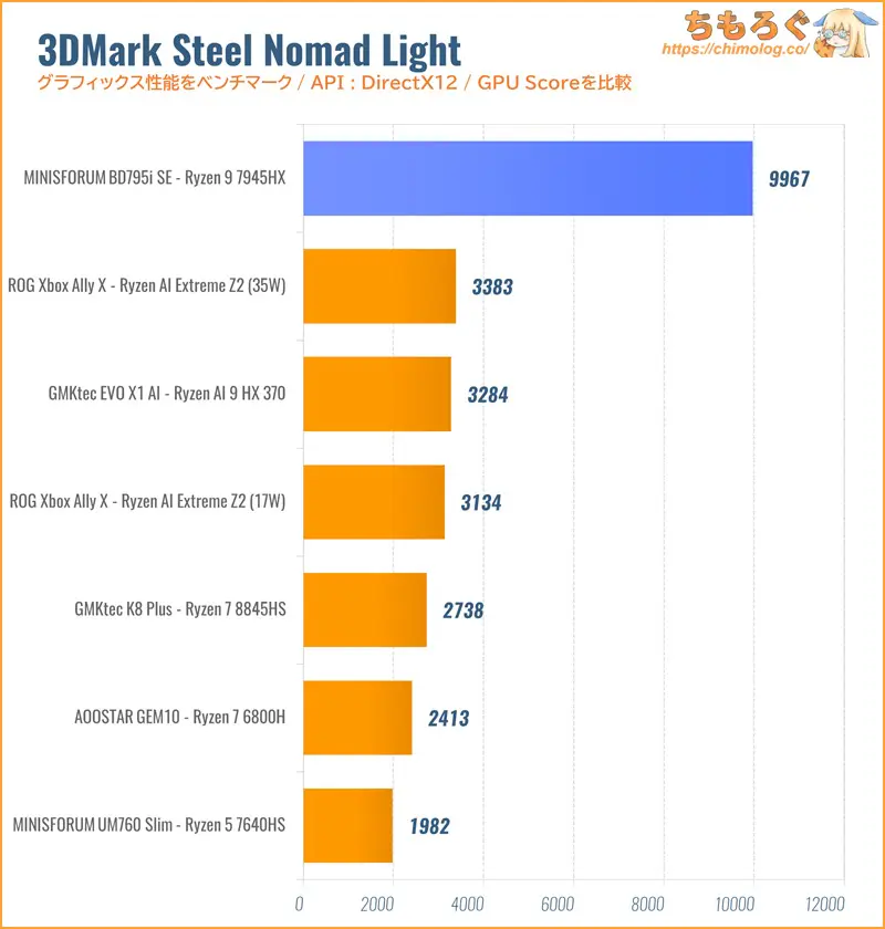 同等品のRyzen 9 7950Xが単品でも約8万円前後もするため、ハッキリ言ってコストパフォーマンスが壊れています。16コア(Zen4)にMini ITX板がセットになって6~7万円台です。