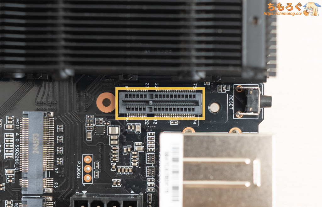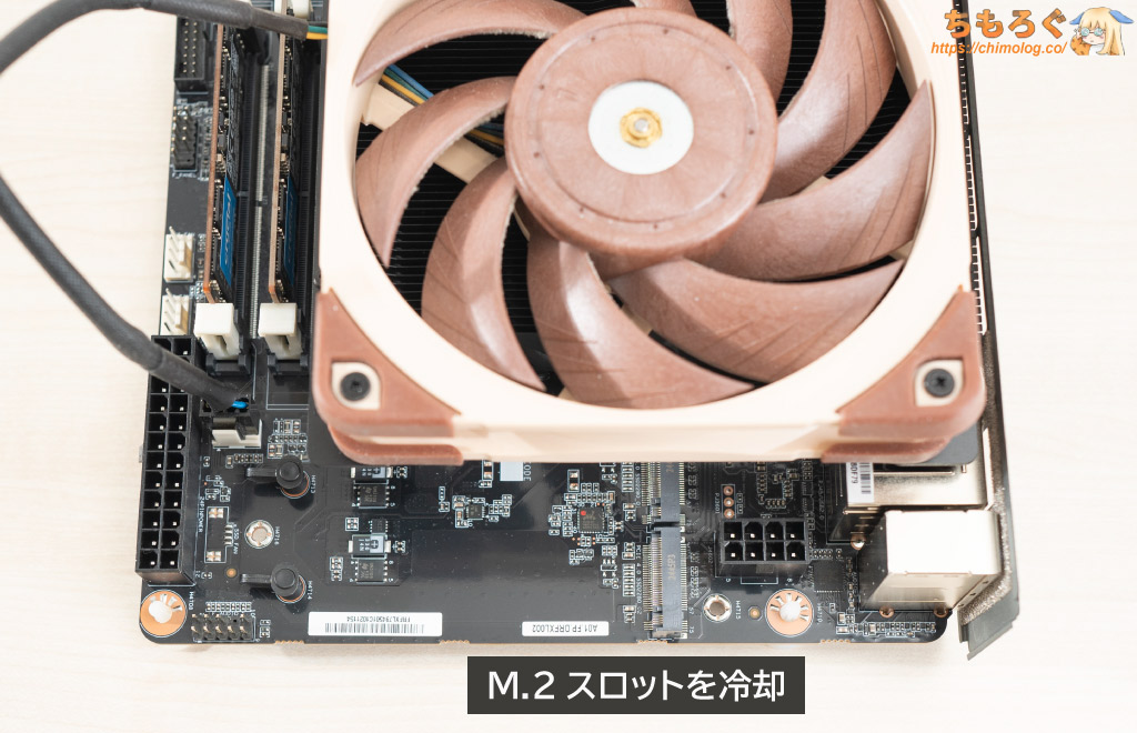 マザーボード自体も意外とパワフル。DrMOSをぜいたくに使用した高性能VRM、Realtek 2.5G LANポート、USB Type-C(DP Alt Mode対応)など。ミドルクラス相当のMini-ITXマザボに匹敵します。