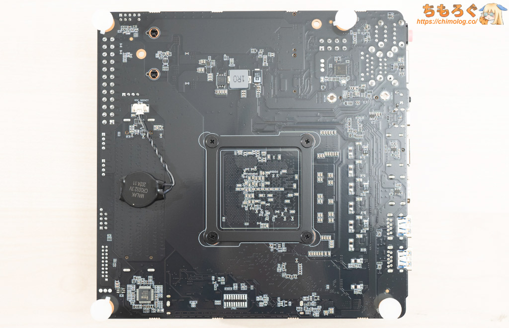 マザーボード裏面にバックプレートはなく、基板がそのまま露出します。