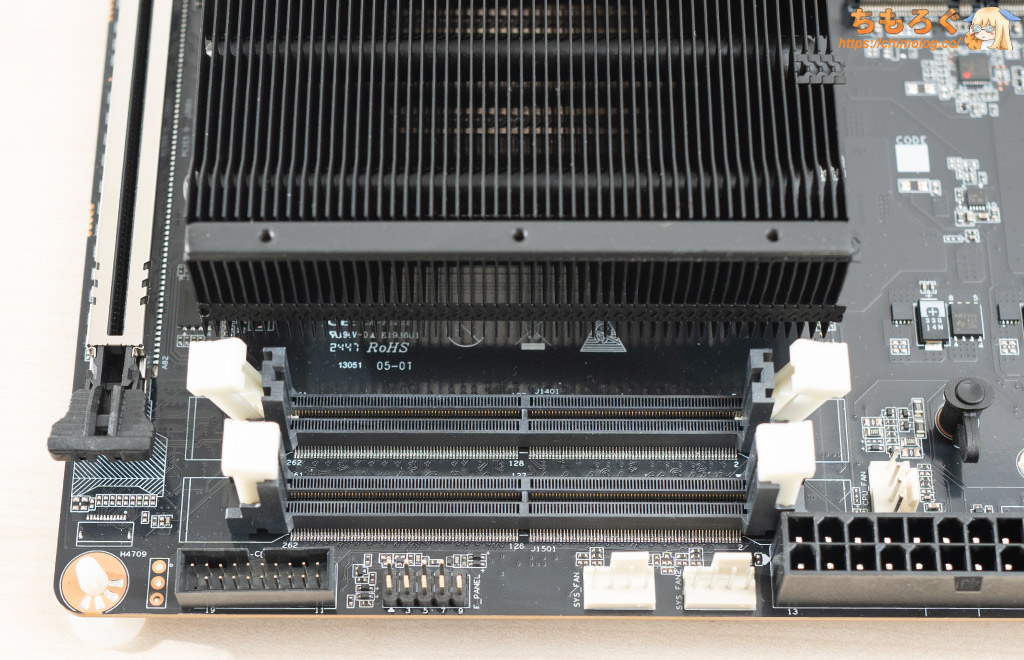 一般的なマザーボードでありがちな端子の爪(出っ張り)が省略され、そのまま取り付けやすいデザインに改良されています。