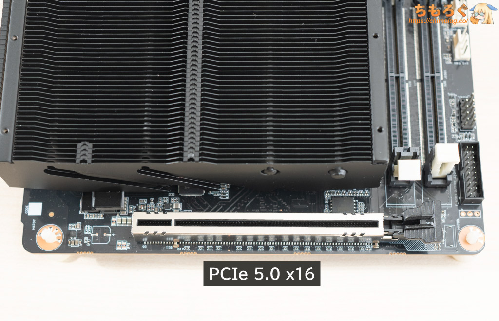 接続インターフェイスは「PCIe 5.0 x16(CPU直結)」で、グラフィックボードや拡張ボードを使えます。