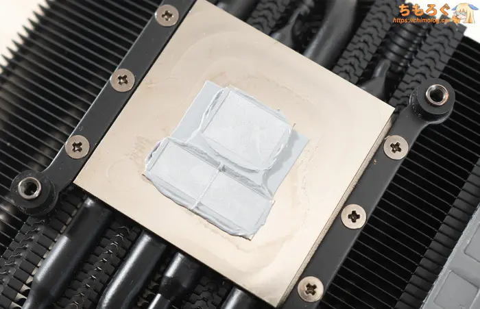 CPUに接触するベースプレートに加えて、VRM用サーマルパッドを貼り付ける専用スペースも設けられています。