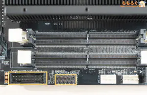 ノートパソコン用の小型メモリに対応し、定格動作クロックは「DDR5-5200」です。DDR5-5600メモリを挿し込んで起動すると、自動的にDDR5-5200で起動します。