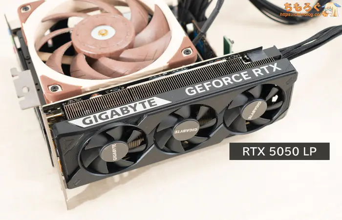 一方で、今回組み込んだロープロファイル対応グラボ「GV-N5050OC-8GL」は普通にうるさいです。ゲーム時に40 dB台(中央値)に達してしまい「普通(40~42.5 dB)」に分類されます。
