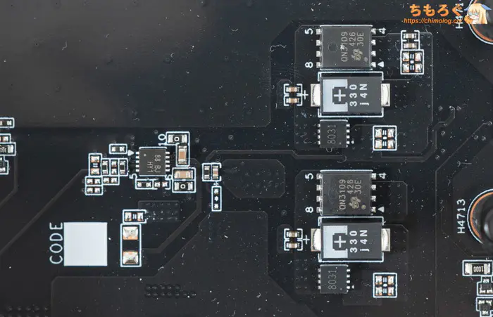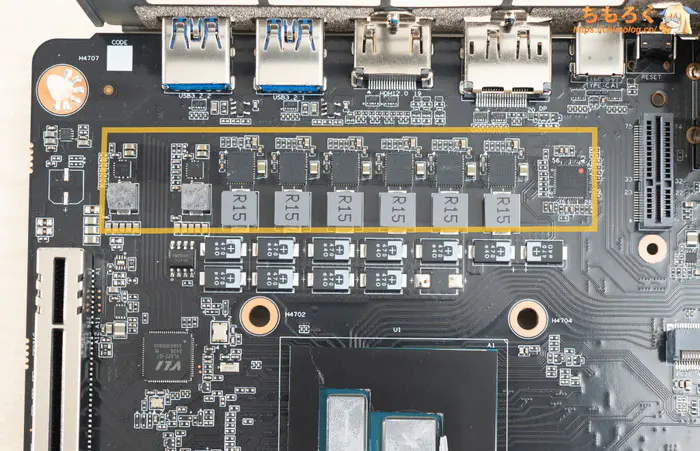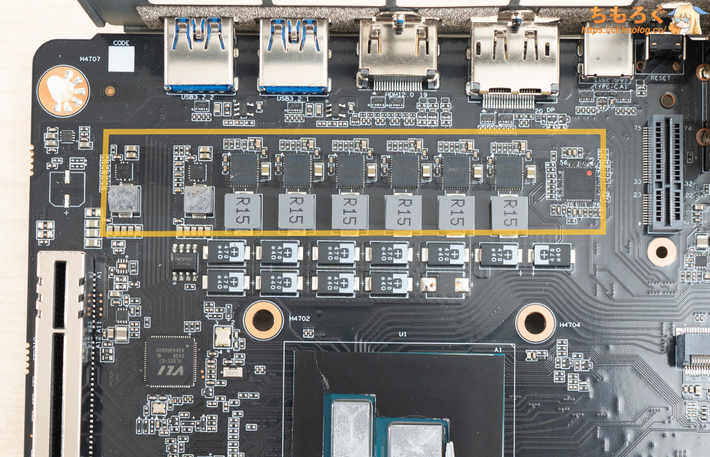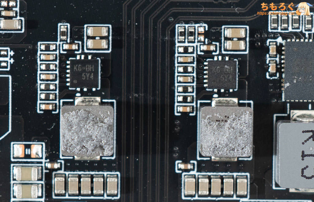 M.2スロット直下にあるVRM群は、おそらくDDR5メモリ(PUMEM)を担当します。