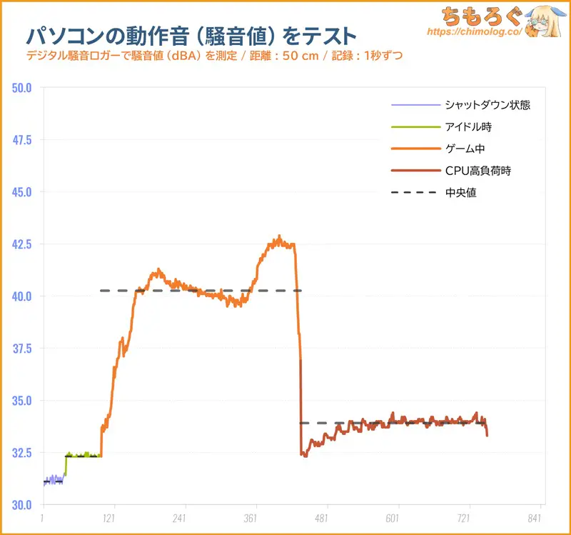 | ゲームプレイ中 (FF14:黄金のレガシー) | 40.3 dB | |