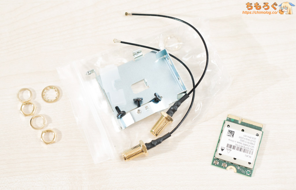 自分でモジュールを買ってきて、金具に組み込んで使います。Wi-Fiアンテナが「MHF4(I-PEX)」規格なので、組み立て難易度はかなり高いです。