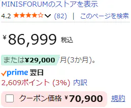 今回レビューするMINISFORUM BD795i SEは、去年(2025年4月)に約6.7万円で買ったものです(重要事項:案件ではありません)。