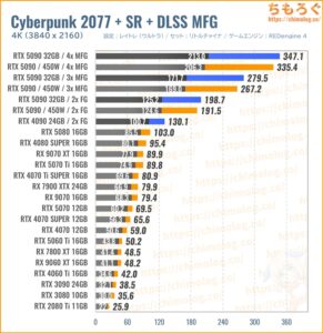 どちらも通常時に対して2~3倍もの性能アップをもたらし、飛び道具を有効化したRTX 5090に勝てるコンシューマ向けグラボは今のところ存在しません。