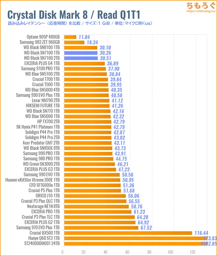 なお、SN7100に匹敵する応答性を出せている「SN8100」も、いわゆる国産NANDで生み出された最新鋭の性能です。