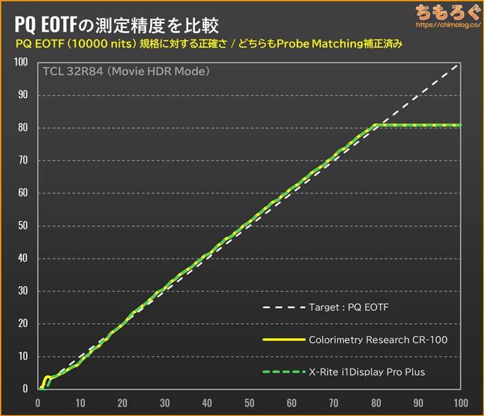 先ほどのPQ EOTF追跡グラフをもう一度。