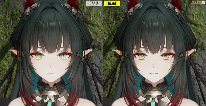 エンドフィールドは高品質なAIアップスケーラー「DLSS 4.0」と「DLSS 4.5」に対応します。標準設定の「TAAU」を使うより、はるかにディティール感がくっきりした映像を表示できます。