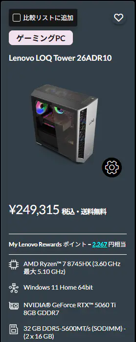 超大手BTO「Lenovo」製ゲーミングPCが3万円の逆ザヤ