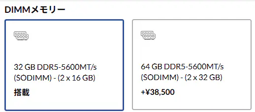 • BTOでメモリ増設で考えているのなら、メモリがSO-DIMM(ノートPC・小型PC用メモリ)かどうかも確認しておいたほうがいいかと
