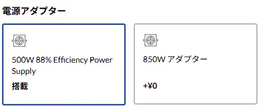 RTX 5060 Ti(16GB)搭載モデルに限り、電源ユニットを500 W ➡ 850 W(80 PLUS GOLD相当)に無料でアップグレード可能