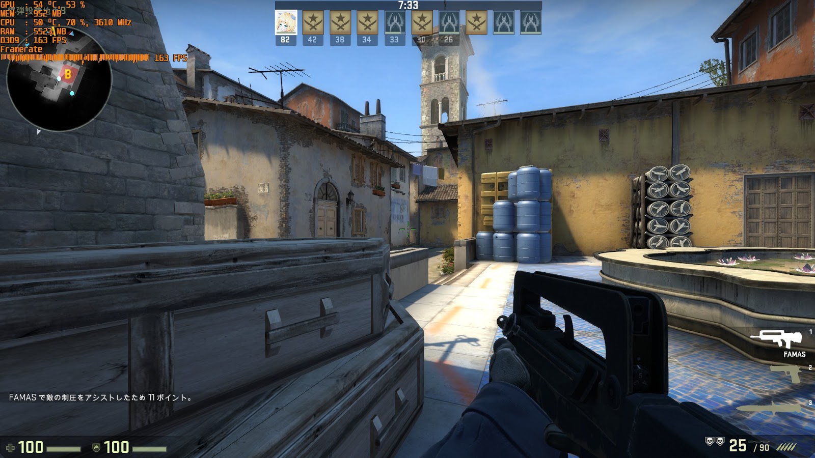 Steamにおけるアクティブユーザー数が依然として50万人を超えることもある、人気MOTPS「CS:GO」にて検証。画質は可能な限り「最高設定」にしています。