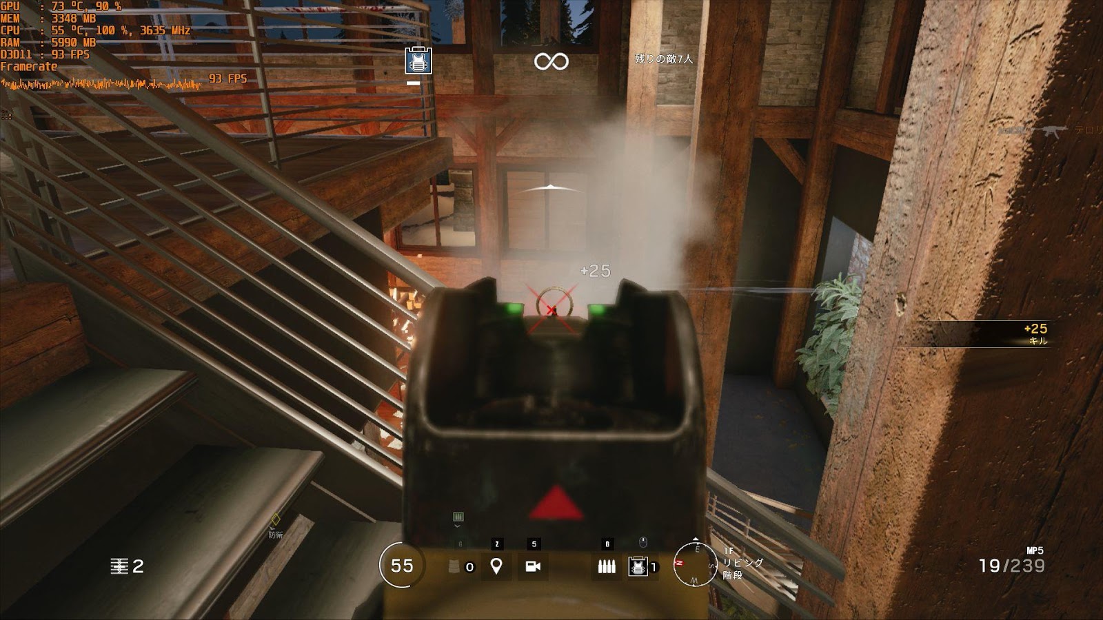R6Sはもともと最適化がよくできた、軽量なゲームなので結果は当然ヌルヌルです。まったく煩わしいところはない。