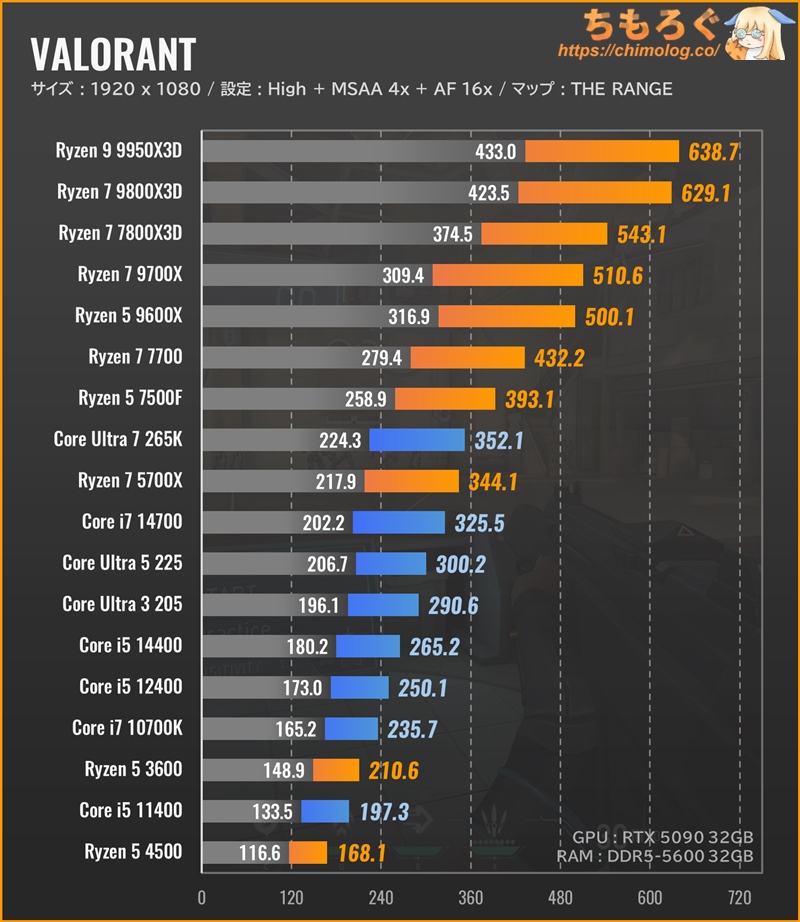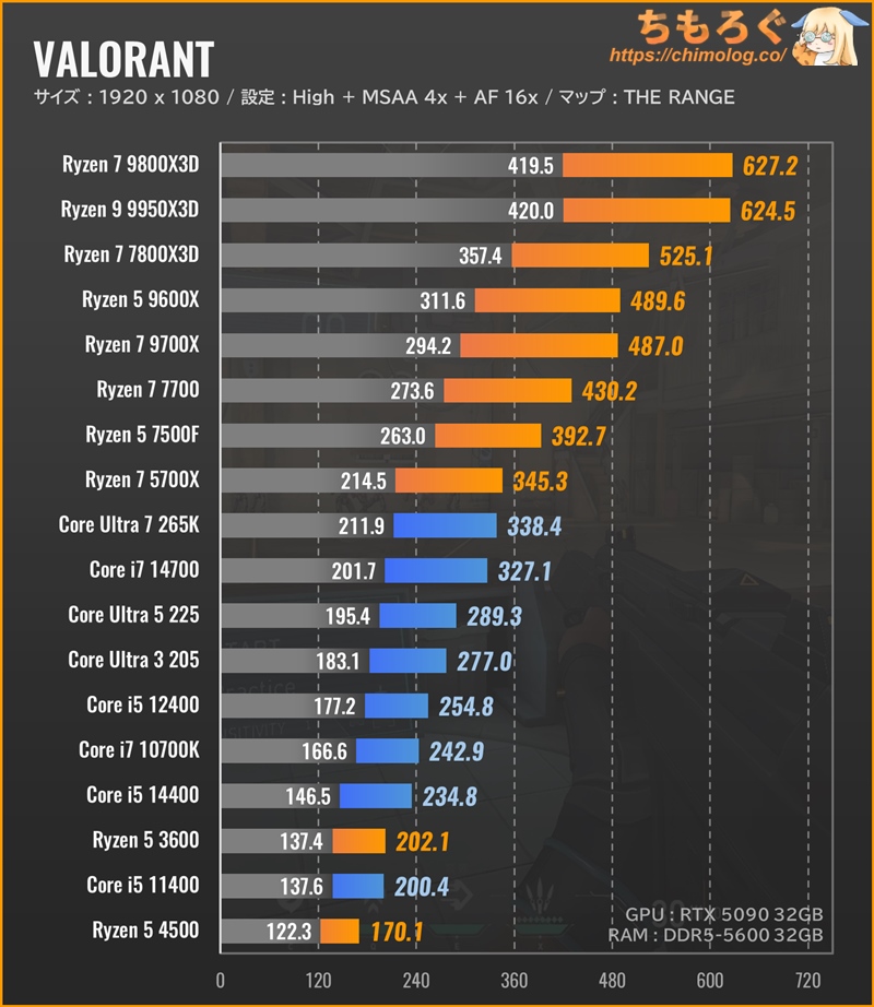 最強のゲーミングPC「Ryzen 7 9800X3D」以上は、VALORANTで平均500~600 fpsを狙いたい、ごく一部のガチゲーマーに向けた選択肢です。
