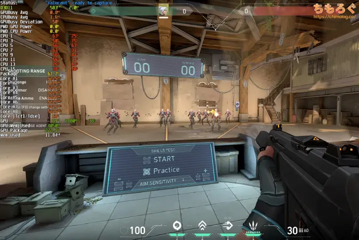 CPUボトルネックの測定と、グラフィックボードの検証、どちらも「THE RANGE(ボットエイム)」を使います。