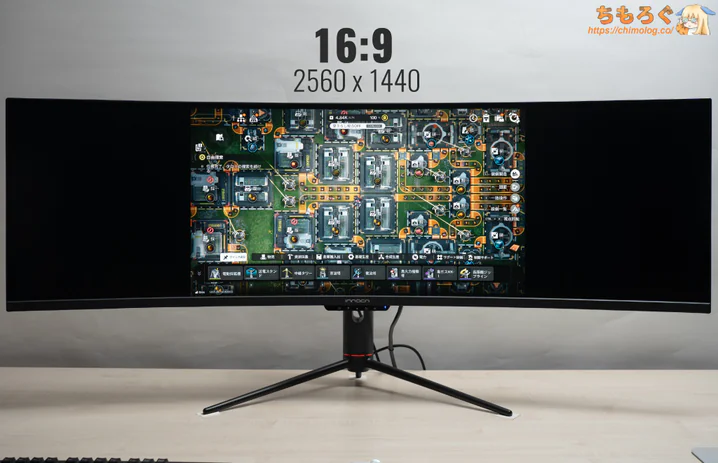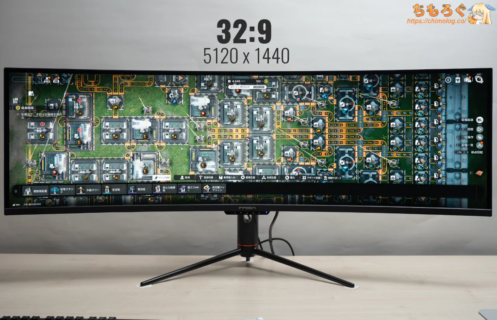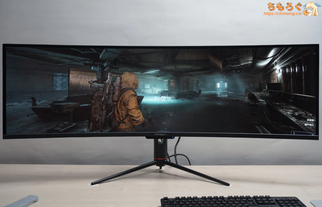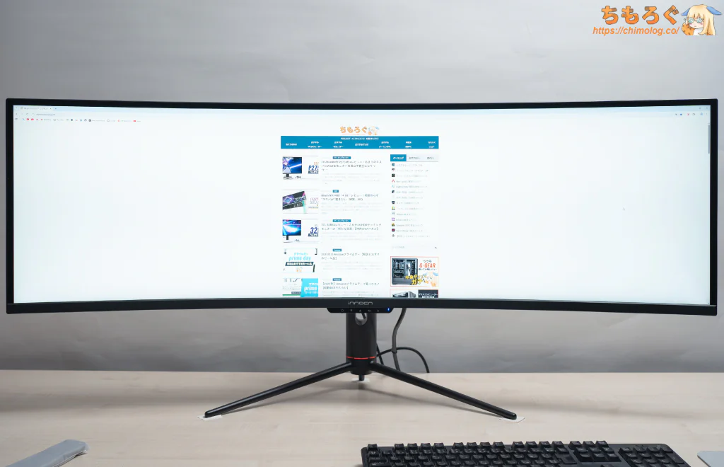 パネルの基本スペックこそハッキリ言って競争力に欠けているのは否定できませんが、32:9もの超横長なワイド画面でとにかく没入感が強烈。