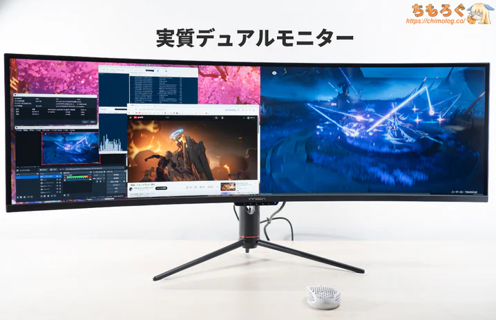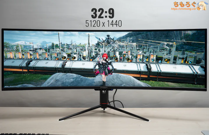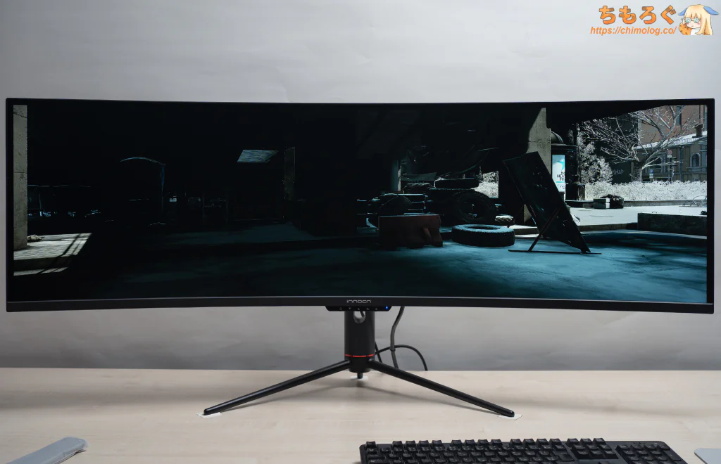 「INNOCN 49C1R」は、WQHDを横に2台並べた「DWQHD(5120 x 1440)」解像度のゲーミングモニターです。