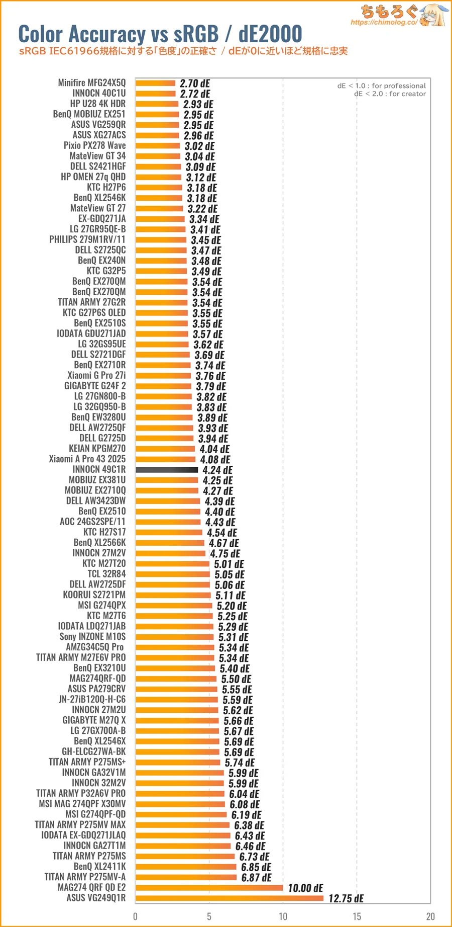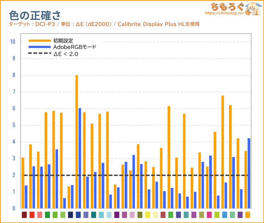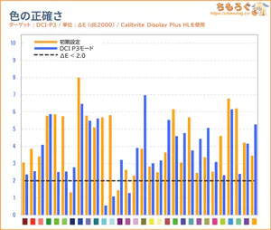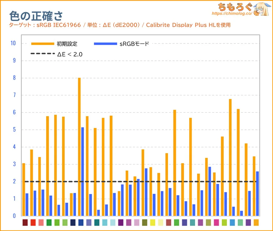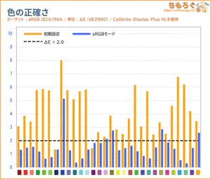 「sRGB」モードと色精度(dE2000)