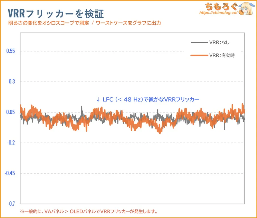- 低fps時にVRRフリッカーあり